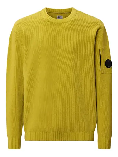 yellow ribbed knit crew neck long sleeves signature Lens detail C.P. Company suggests removing any detachable accessories before washing.
