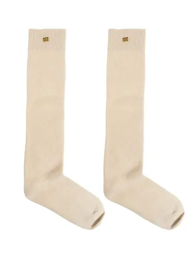 beige ribbed knit logo plaque knee-high Be sure before opening, as socks and hosiery can only be returned in their original, unopened packaging.