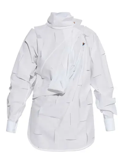 white cut-out detail roll neck long sleeves buttoned cuffs draped detail