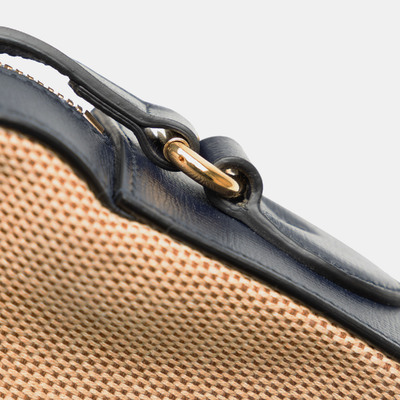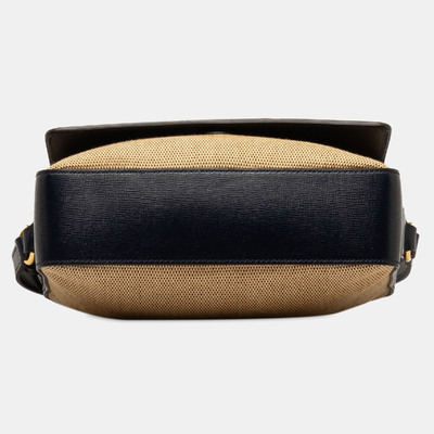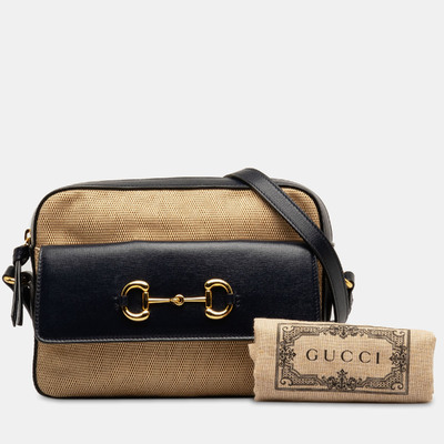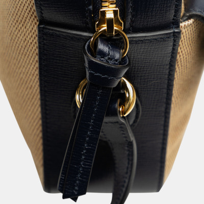 Gucci’s Horsebit 1955 Flap Pocket Camera Bag in smooth black leather and beige canvas blends heritage design with utility. Featuring signature horsebit hardware and a structured silhouette, it’s an elegant Gucci crossbody for everyday use.