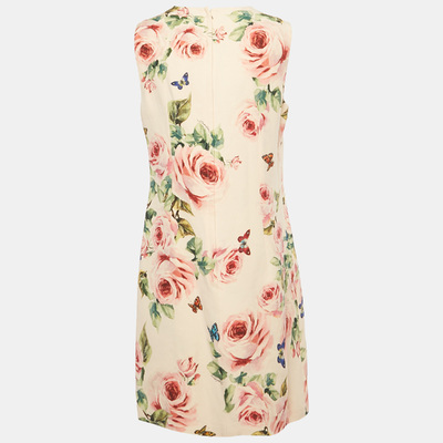 This Dolce and Gabbana shift dress is cut from lightweight crepe and printed with the house’s signature pink roses. The sleeveless silhouette and clean lines let the romantic print take center stage.