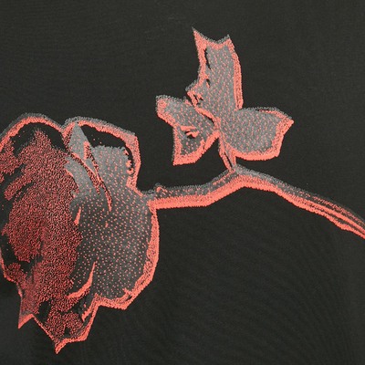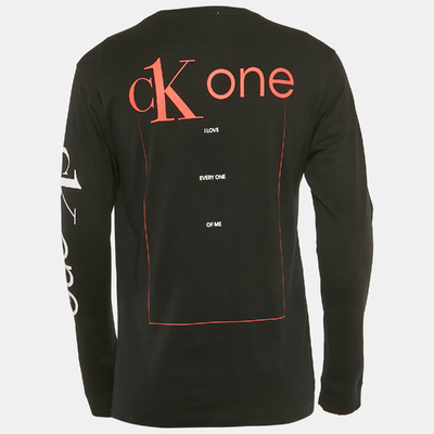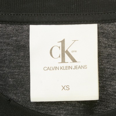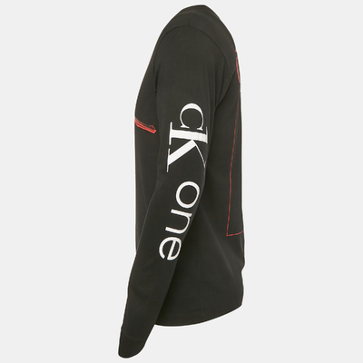 From Calvin Klein’s CK One line, this black jersey T shirt is elevated by a faded rose print and distressed detailing. The worn in texture lends vintage appeal while maintaining the label’s minimalist sensibility. Designed for relaxed styling, it pairs well with jeans or cargo pants, embodying understated cool with a touch of romantic rebellion.
