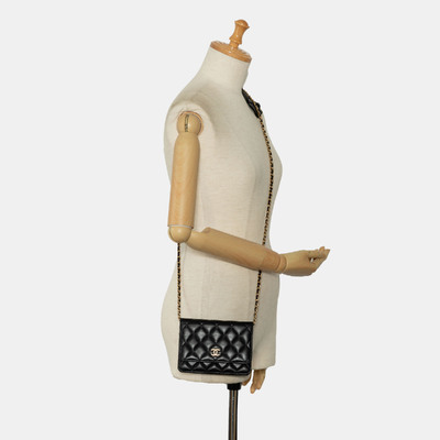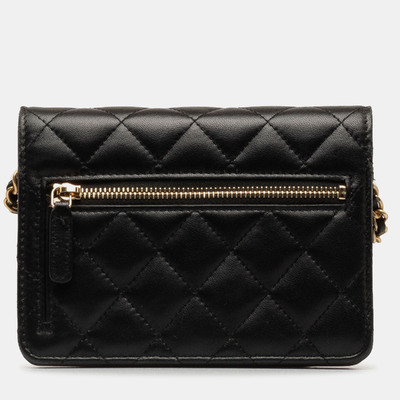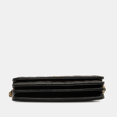 The Chanel Black Lambskin Romance Wallet on Chain embodies understated elegance in a compact, versatile form. Crafted from supple black lambskin, its smooth texture complements the minimalist silhouette, while subtle quilting adds depth and refinement.