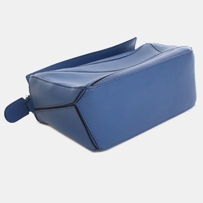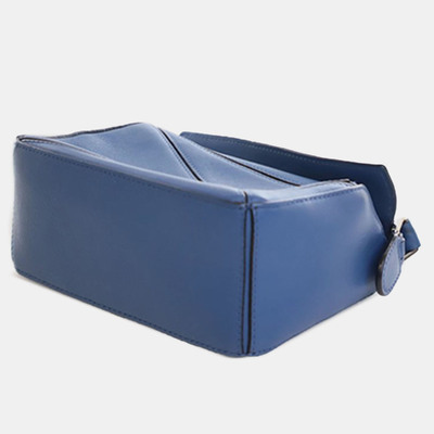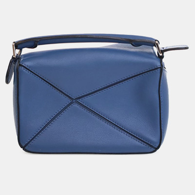 The Loewe Blue Mini Calfskin Puzzle Satchel is a masterclass in modern design and artisanal craftsmanship. Constructed from supple blue calfskin, its distinctive geometric panels create the signature Puzzle silhouette, combining architectural intrigue with playful sophistication.