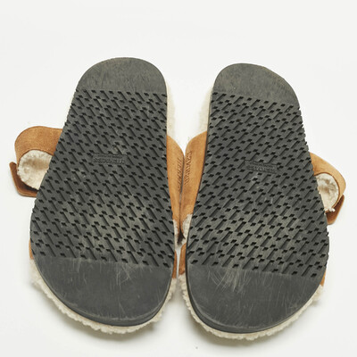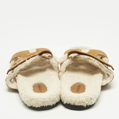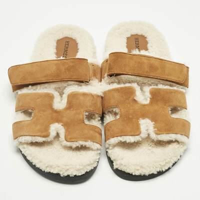 Hermès brings cozy warmth to casual wear with these brown suede Chypre sandals. The plush fur lining and signature H cut straps make them perfect for off duty days. Style them with neutral knits and relaxed tailoring for an elevated take on everyday ease.