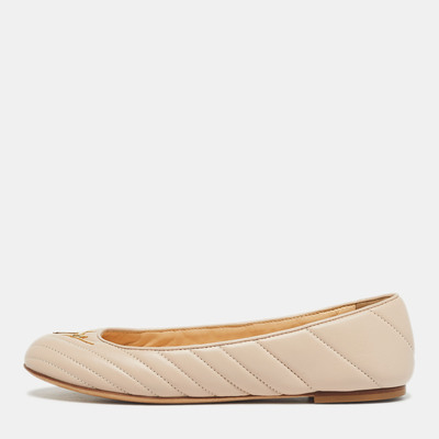 These authentic Giuseppe Zanotti ballet flats delight in pink quilted leather. The gentle sheen of the material meets a golden logo accent that adds just the right note of distinction. Light on the feet and graceful in look, they’re an easy way to bring charm to everyday style.