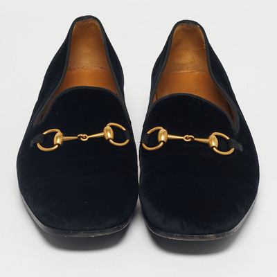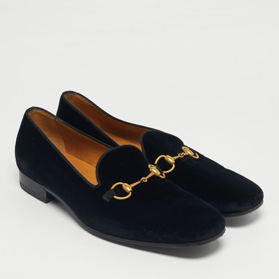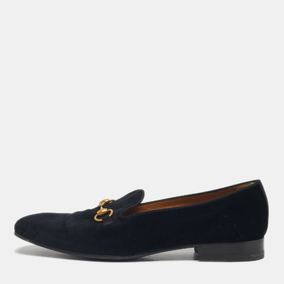 Gucci Black Velvet Horsebit Slip On Loafers Size 44 1229756 (чёрный, lpn31060989)