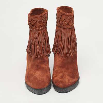 Le Silla Brown Suede Fringe Wedge Ankle Boots Size 37.5 1229967 (коричневый, lpn31061007)