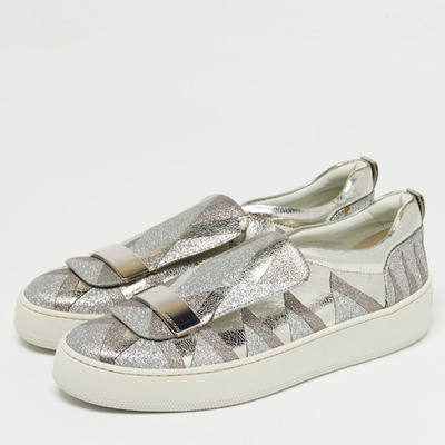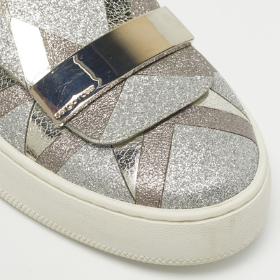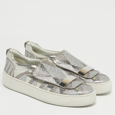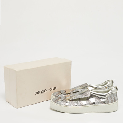 Sergio Rossi Silver Glitter and Leather Blair Sneakers Size 41 1229904 - 1