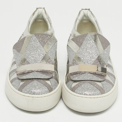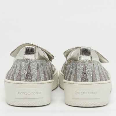 Sergio Rossi Silver Glitter and Leather Blair Sneakers Size 41 1229904 (lpn31061010)
