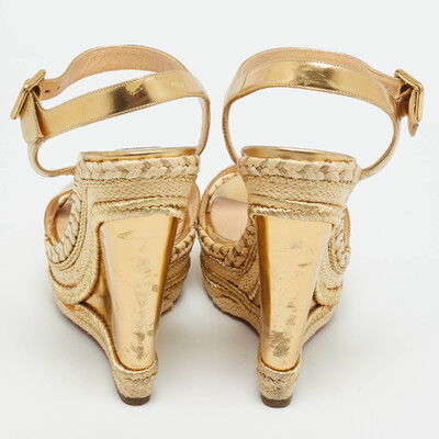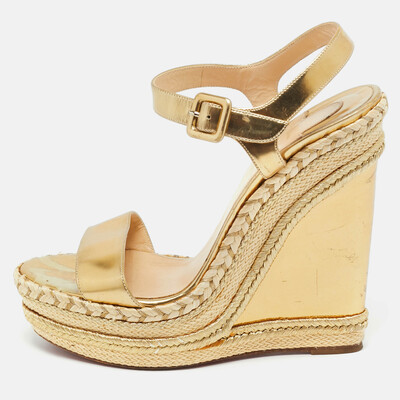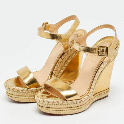 Christian Louboutin Gold Leather Wedge Sandals Size 39 1229654 (lpn31061041)