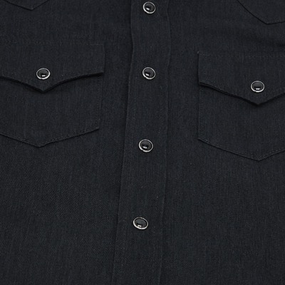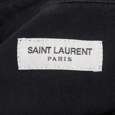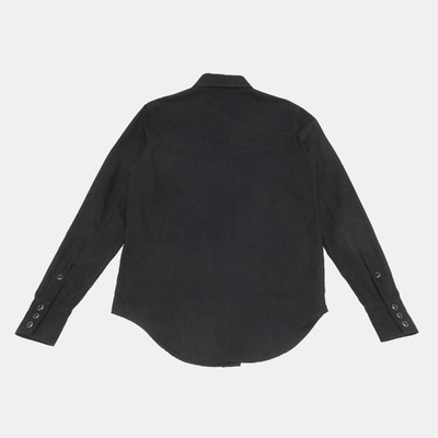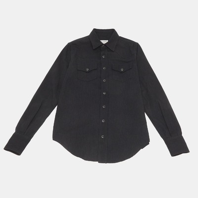 Saint Laurent’s long sleeve shirt in black denim embodies casual refinement. Crafted from pure cotton with a slightly worn finish, it features pointed collars, flap pockets, and tonal stitching that enhance its tailored appeal. A timeless layer for day to night wear, it pairs effortlessly with slim jeans or leather trousers for a confident, rock inspired look synonymous with the Parisian house.