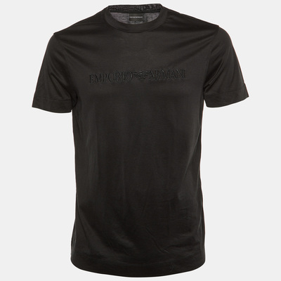 Emporio Armani Black Logo Embroidered Jersey Crew Neck T-Shirt L 1229668 - 1