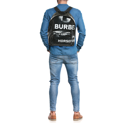 This Burberry mens backpack is crafted from coated canvas with leather trims and bold Horseferry logo prints. Spacious yet lightweight, its a versatile piece that carries the brand’s heritage into everyday wear.