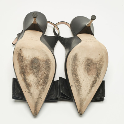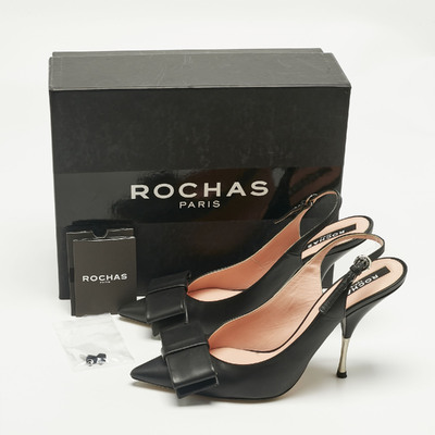 Rochas Black Leather Bow Slingback Pumps Size 40 1229729 (чёрный, lpn31061089)