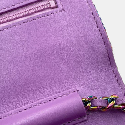 Chanel Multicolor CC Quilted Tweed Rainbow Hardware Wallet on Chain 1229379 (lpn31061106)