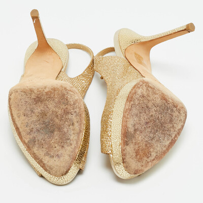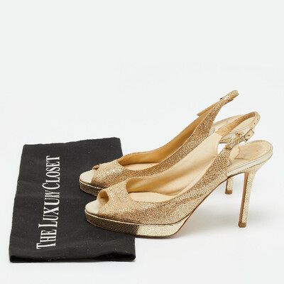 These Verity pumps from Jimmy Choo shimmer with the brand’s signature glamour. Crafted in gold lurex fabric, they feature a graceful peep toe and slender heel that flatter the foot’s arch. The metallic weave catches light from every angle, lending instant radiance to eveningwear. Designed for statement occasions, they embody Jimmy Choo’s blend of modern femininity, impeccable tailoring, and luminous finish.