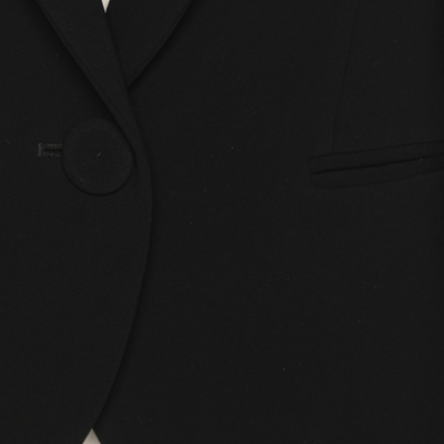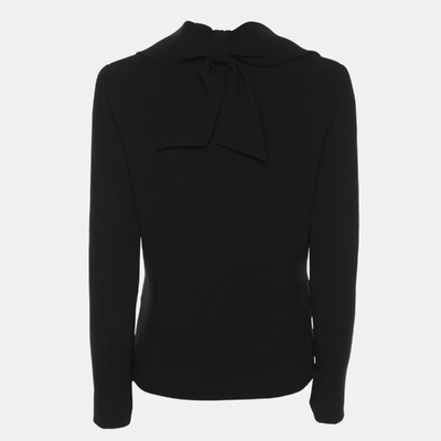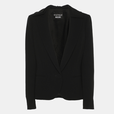 This black crepe blazer from Boutique Moschino has a single breasted front and a bow resting on the back. Wear it with tailored pants or over a dress, with an updo to show off the back detail.