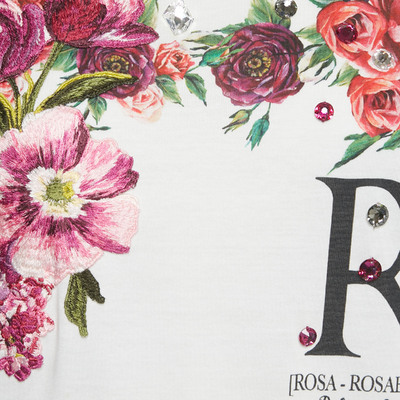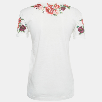 Crafted from white cotton, this preloved Dolce and Gabbana womens T shirt features delicate floral prints and jewel like embellishments. The fit is modern and flattering, making it a standout casual piece.