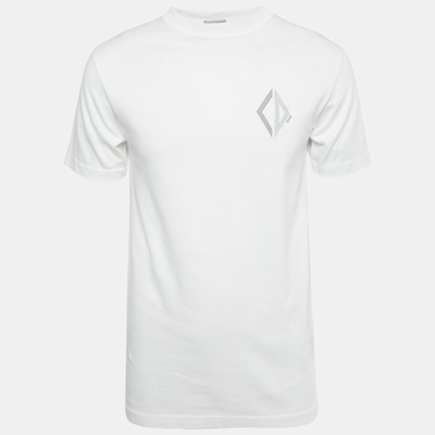 Dior Homme’s T shirt in soft white cotton is elevated with tonal “CD Diamond” embroidery — a modern reworking of the maison’s archival motif. The slim silhouette, ribbed neckline, and fine stitching demonstrate exceptional craftsmanship. Both minimal and refined, it serves as an everyday essential with understated luxury. Style it with tailored trousers or denim for a crisp, timeless ensemble.