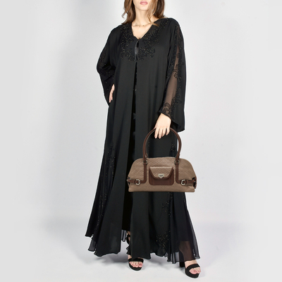 Textured to perfection, this Ferragamo satchel showcases the house’s signature Gancini motif across supple beige leather. The structured shape, paired with gleaming hardware and brown trims, makes it polished, practical, and endlessly wearable.
