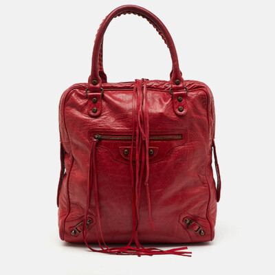 Balenciaga Red Leather Motocross Classic Bowling Bag 1228632 (красный, lpn31061304)