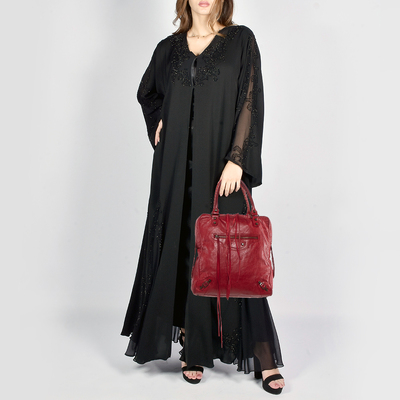 Balenciaga revisits its cult Motocross Classic design in a rich red leather finish. Characterized by textured grain, whipstitch handles, and aged brass hardware, this bowling style bag offers a spacious yet relaxed silhouette. Zipper accents and mirror charm nod to its iconic heritage. Equal parts edgy and timeless, it captures the house’s DNA of modern rebellion rendered through exceptional craftsmanship.