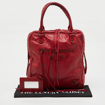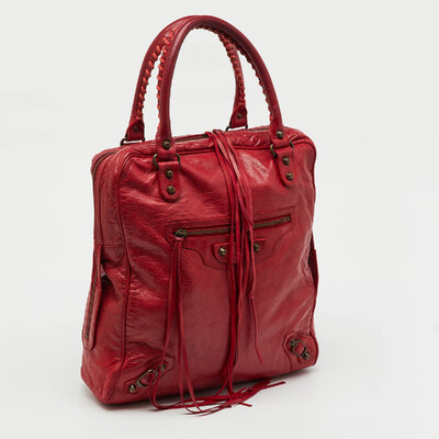 Balenciaga Red Leather Motocross Classic Bowling Bag 1228632 - 1