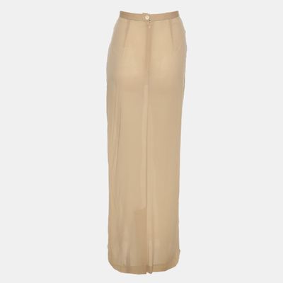 Crafted in airy beige chiffon, this Dolce and Gabbana maxi skirt floats elegantly with every step. Its floor length design and light texture make it perfect for warm weather occasions or layered styling.