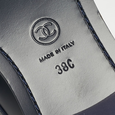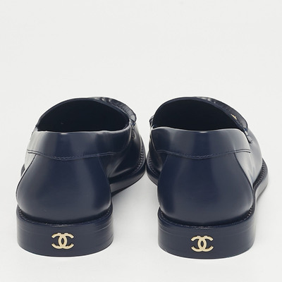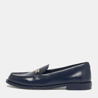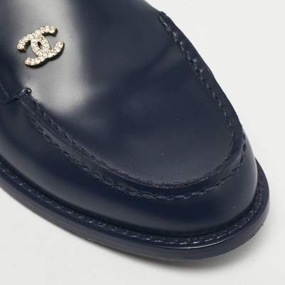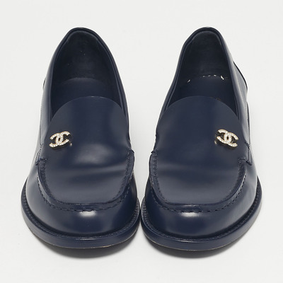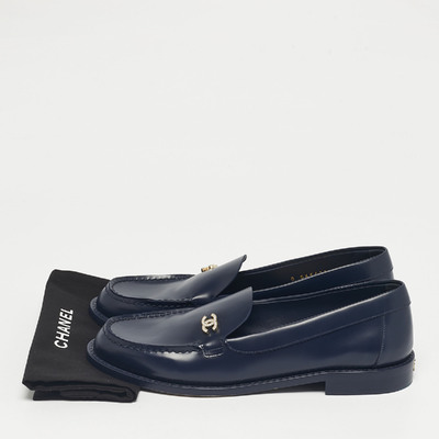 Chanel Navy Blue Leather CC Logo Slip On Loafers Size 38 1228275 (lpn31061320)