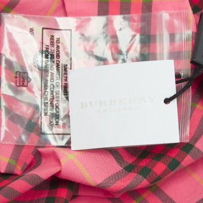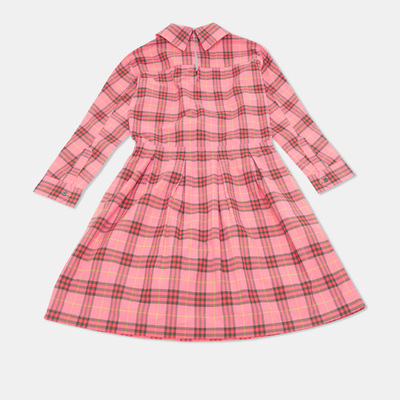 Sweet and iconic, this Burberry dress showcases the brand’s signature pink check pattern in soft cotton. Designed with a flattering A line silhouette, it’s perfect for parties, outings, or special occasions. A timeless piece combining style and comfort for little ones.