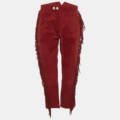 Zadig & Voltaire Red Suede Fringed Play Frange Trousers S 1226445 - 1