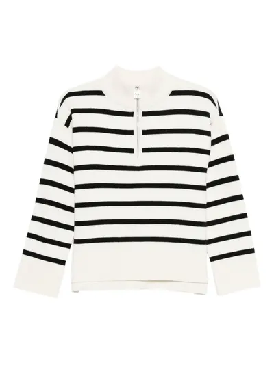 white horizontal stripe pattern half zip fastening high neck ribbed knit