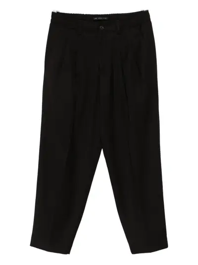 black front button and zip fastening elasticated waistband pleat detailing belt loops