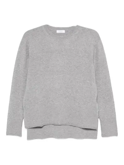 grey asymmetric hem crew neck long sleeve ribbed trims