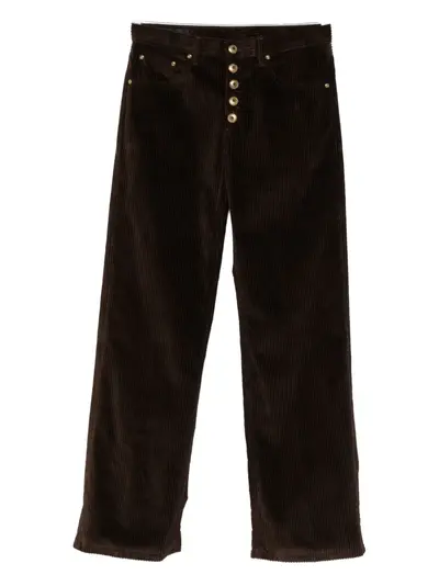 brown corduroy texture button fastening front pockets rear pockets gold-tone hardware