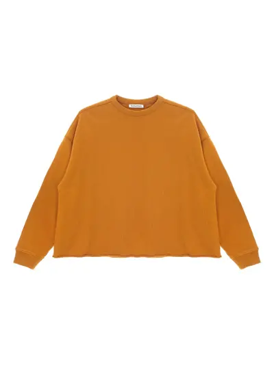 orange ribbed cuffs raw hem round neck long sleeves tonal stitching