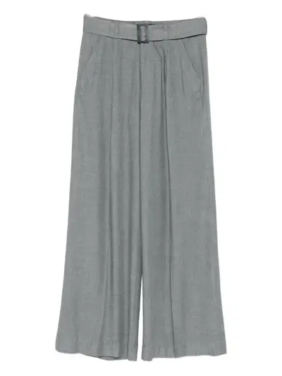 grey belted waist front pockets back pockets pleats wide leg