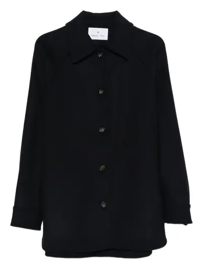 midnight blue wool blend button fastening long sleeves straight hem