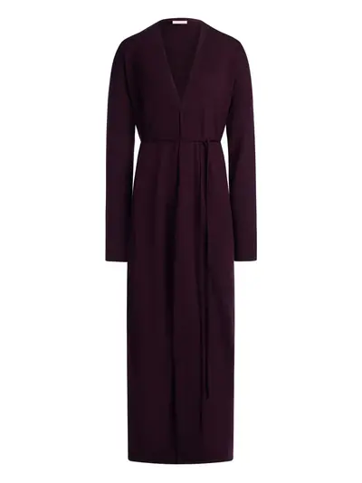 dark purple V-neck tie fastening long sleeves fine knit merino-silk blend