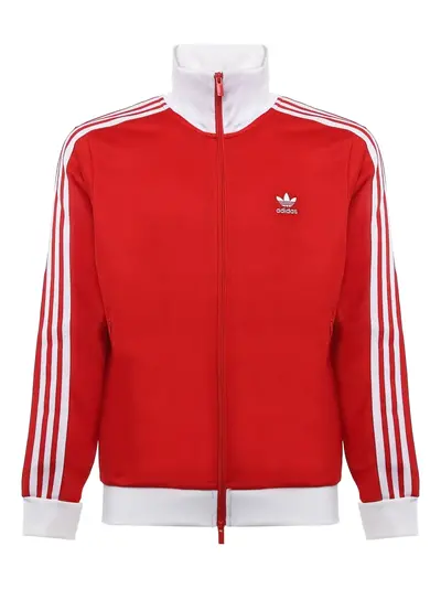 scarlet red logo detail front zip-closure stand-up collar zip pockets signature three-stripes