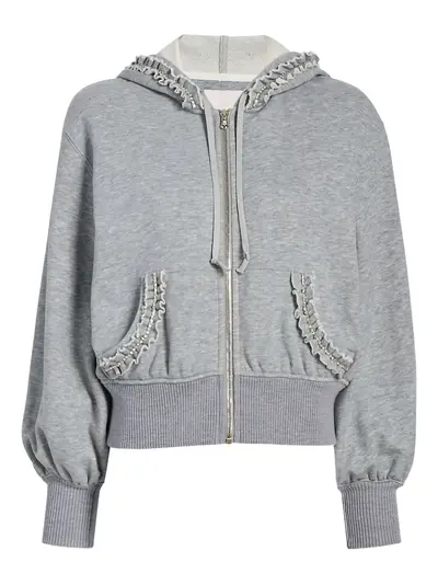 grey ruffled trim zip fastening hood long sleeves front pockets