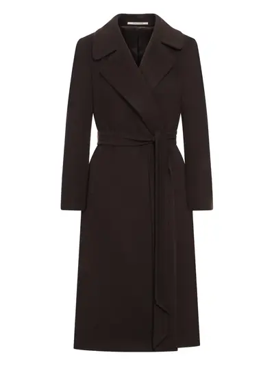 dark brown wool belt lapel collar long sleeves