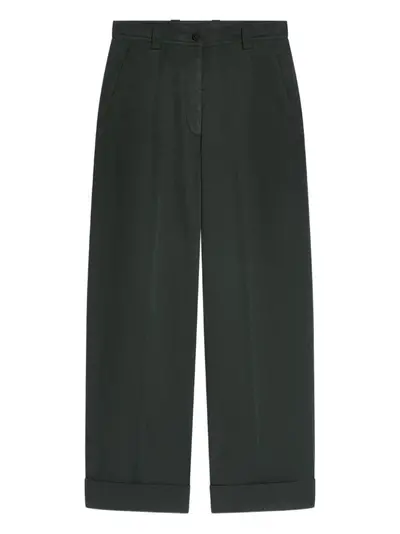 dark green pleated front cuffed hems straight leg button fly side pockets