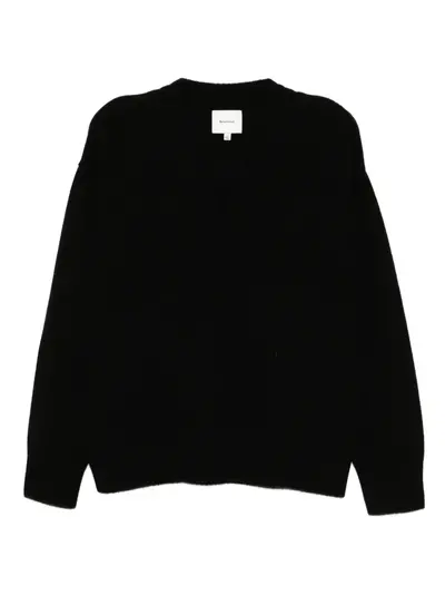 black ribbed V-neck long sleeves drop shoulder ribbed cuffs and hem