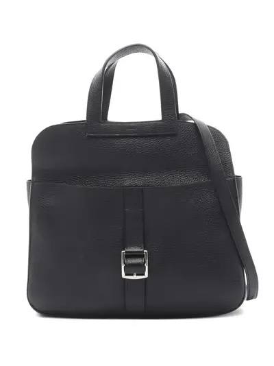 2018 black leather silver hardware top handle shoulder strap buckle fastening