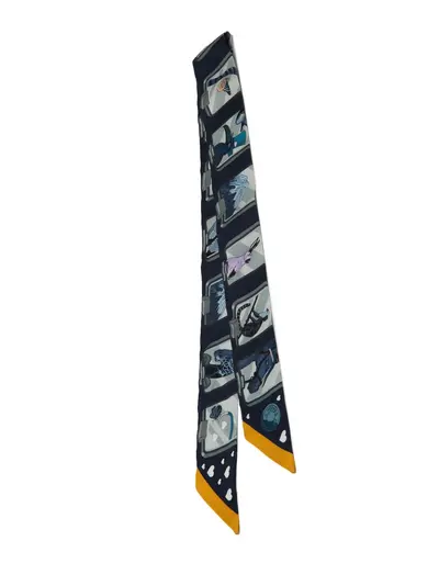 print on 100% silk blue Inclusions: box. Condition: GOOD. This previously owned and used item is in good condition with minimal signs of use. This may include fading of material or plating and scratches. Due to the exclusivity of this item and its limited availability, processing and delivery might take longer than usual. Declared Damages: Front Feature(s) Moderate Cut Stitching. Please refer to the photos on this product page for a detailed view of the item, including any damages declared.