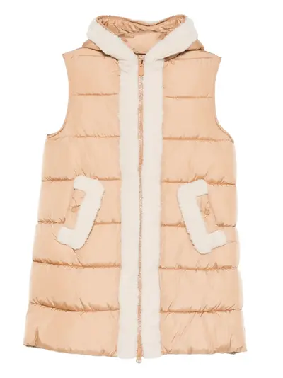 beige classic hood front zip fastening sleeveless front flap pockets trim detail