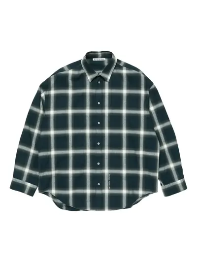dark green checked pattern button fastening long sleeves buttoned cuffs chest pocket