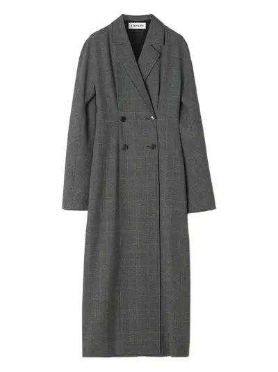 grey checked pattern double-breasted fastening notched lapel long sleeves midi length